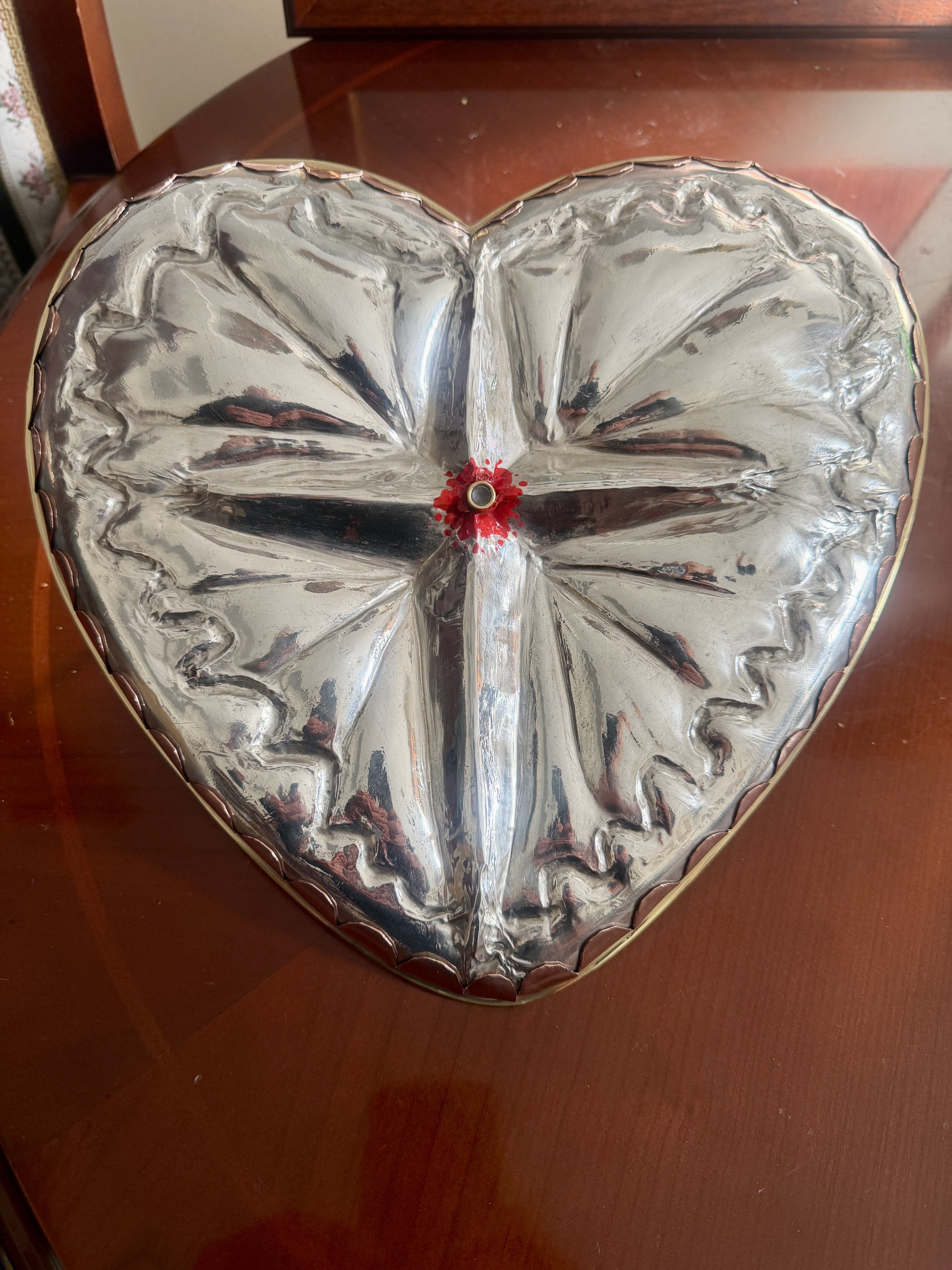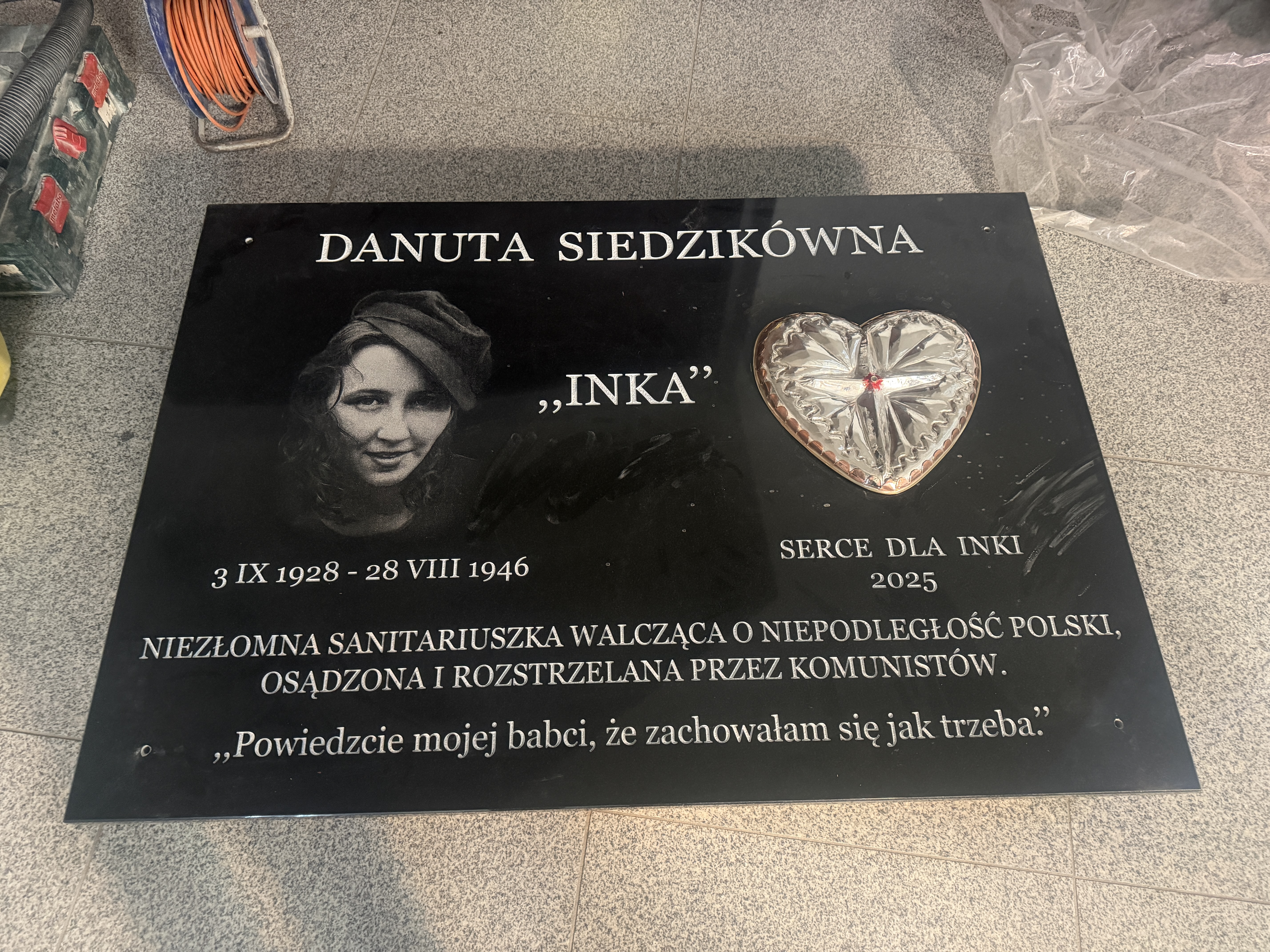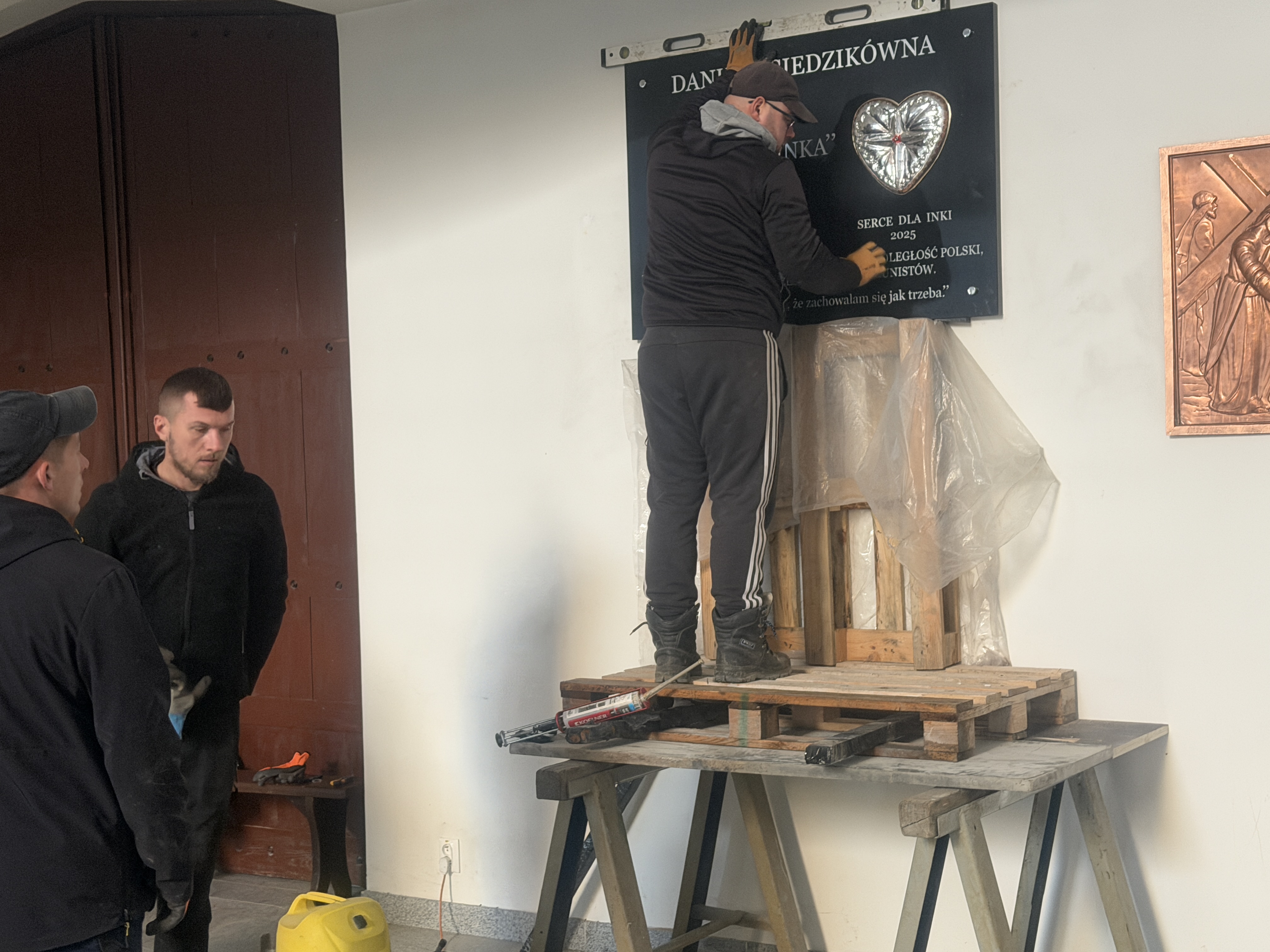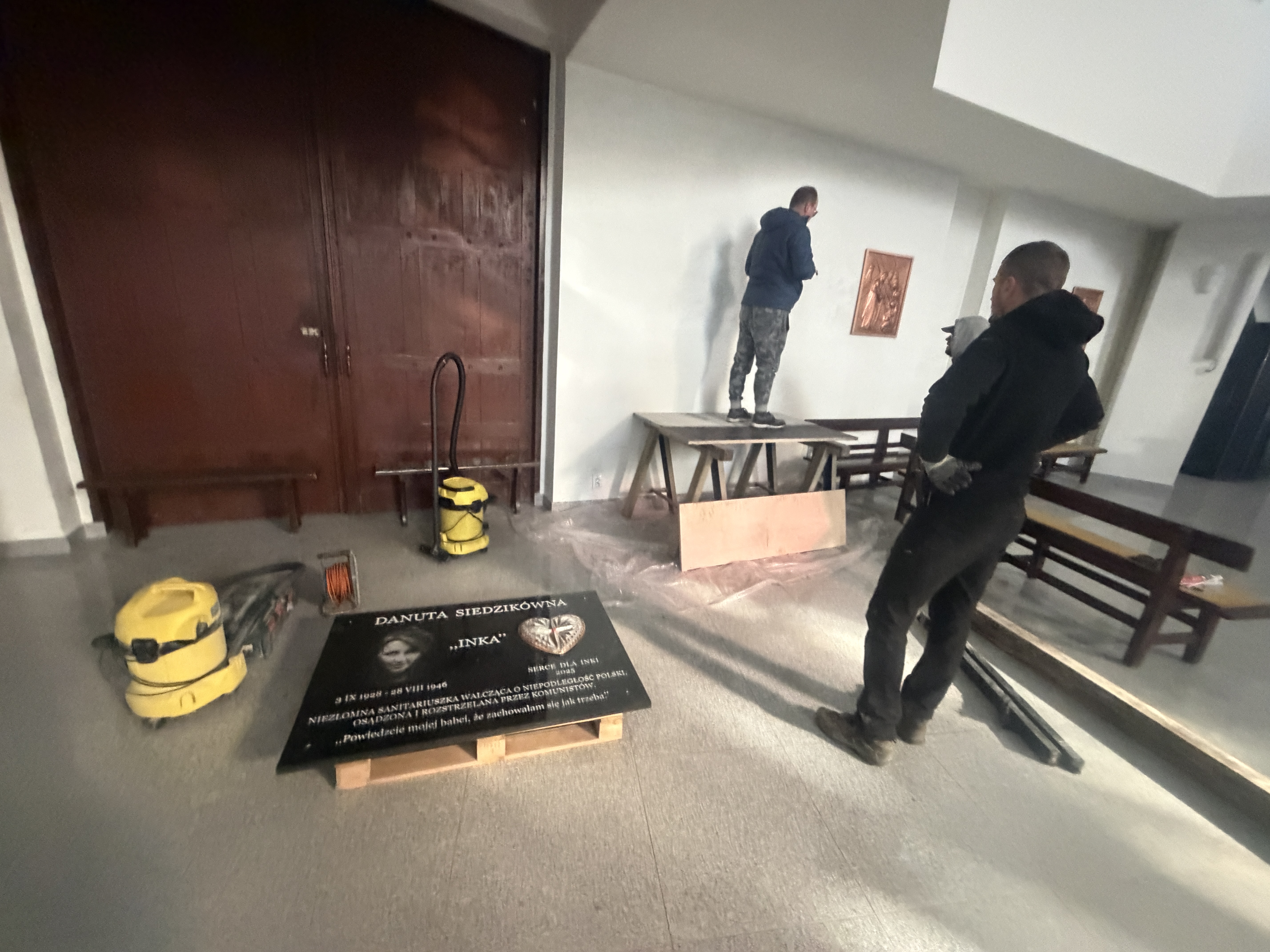 Serce ze srebra i tablica pamiątkowa są już wykonane. Tablica została wmontowana przy wyjściu z górnego kościoła.